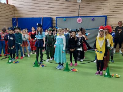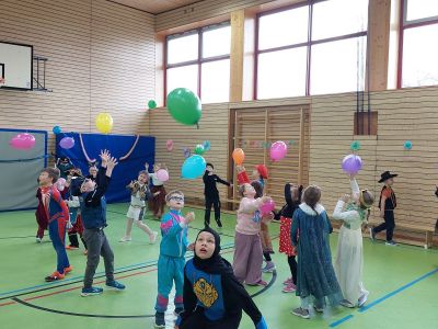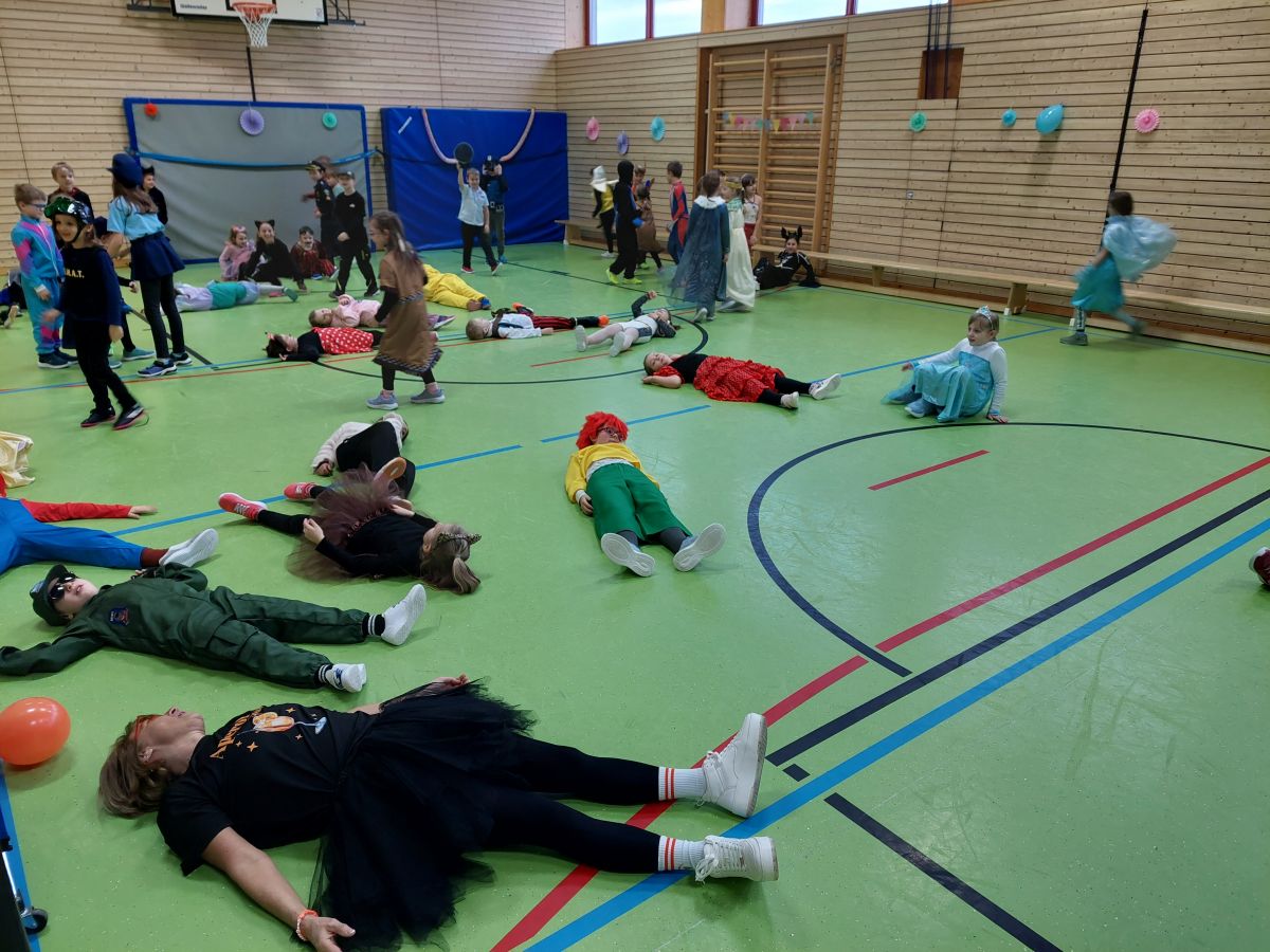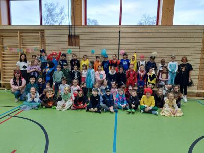 Bei der traditionellen Faschingsgaudi in der Turnhalle staunten unsere Schülerinnen und Schüler am Freitag, den 13.02.26, über viele kreative Verkleidungen und feierten zwei Schulstunden lang ausgelassen. Die Kinder sangen und tanzten fröhlich zu beliebten Liedern und zeigten Geschicklichkeit beim Eierlauf und weiteren Spielen. Für gute Stimmung bei der ersten und zweiten Jahrgangsstufe sorgte auch der Besuch des Künzinger „Gaudiwurms“ mit den Kindergartenkindern. Die Polonaise mit Groß und Klein war für alle ein schönes Gefühl des Miteinanders. Zudem kümmerten sich der Elternbeirat und das Schlemmerpause- Team mit einem gesunden Faschingsbuffet um die nötige Stärkung. Mit viel Liebe zubereitet gab es in der Aula frisches Obst, Gemüse und kleine Köstlichkeiten. Ein herzliches Dankeschön an alle Helferinnen und Helfer sowie Mitfeiernde.