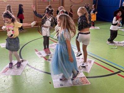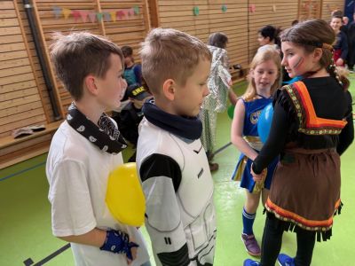 Am letzten Schultag vor den Ferien ging es für die 3. und 4. Klasse bestens gestärkt nach der gesunden Pause in die Turnhalle zur Faschingsgaudi. Fantasievoll verkleidet als Schmetterlinge, Eisprinzessinnen, Cowboys, Polizisten, Fußballstars, Cheerleader und vielem mehr wurde ausgelassen zu Partymusik Fasching gefeiert. Spiele wie Stopptanz, Zeitungs- und Luftballontanz durften dabei natürlich nicht fehlen.