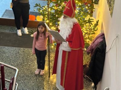 Am Freitag besuchte der Nikolaus gleich beide Schulhäuser. Natürlich wurde er musikalisch begrüßt. Darüber freute er sich sehr und schenkte den Klassen kleine Geschenke.
