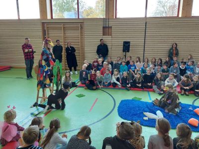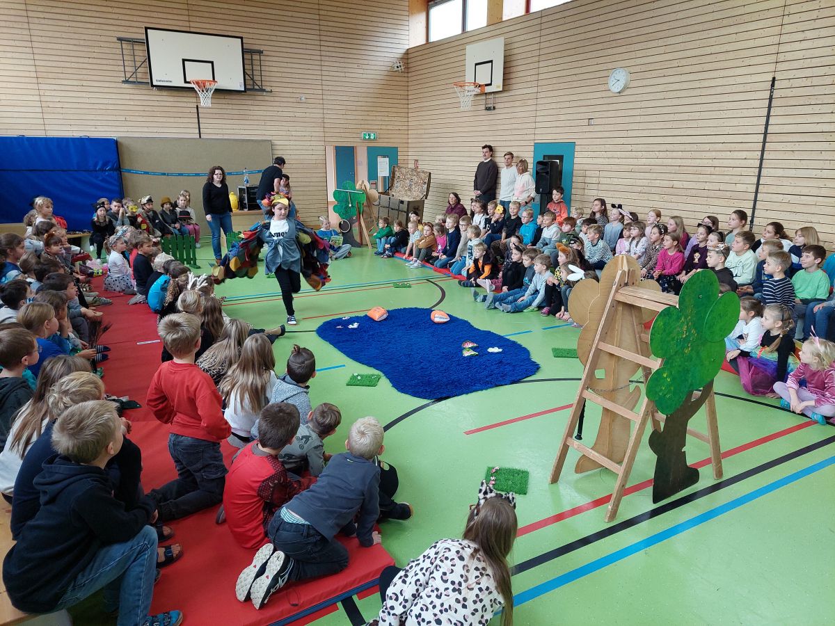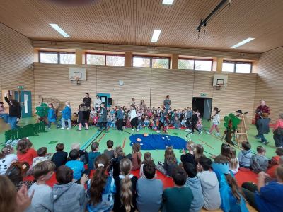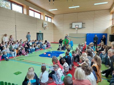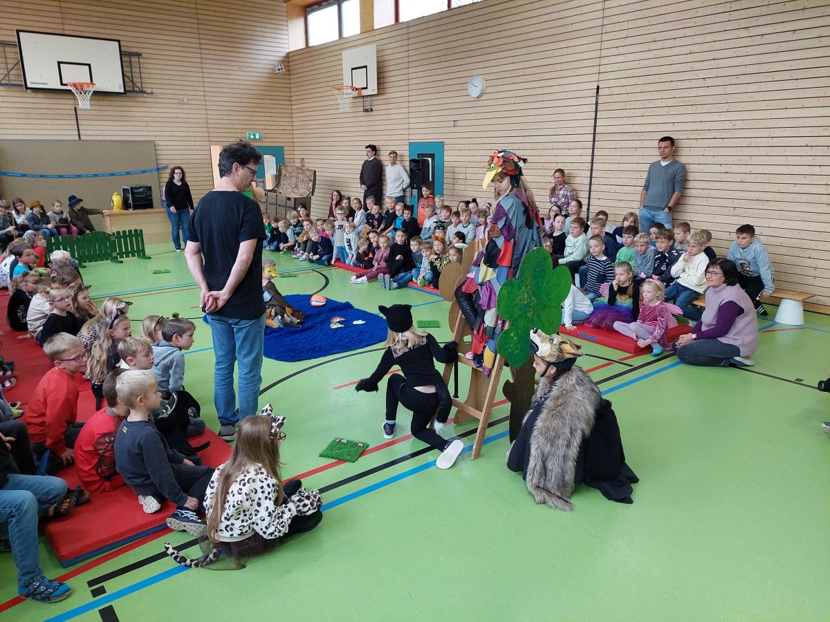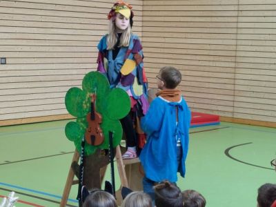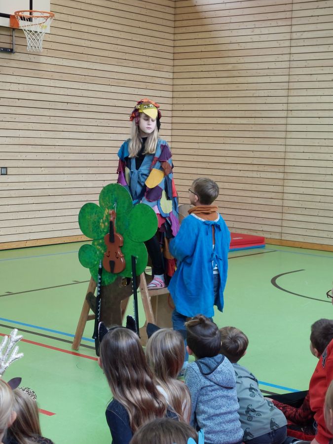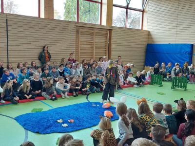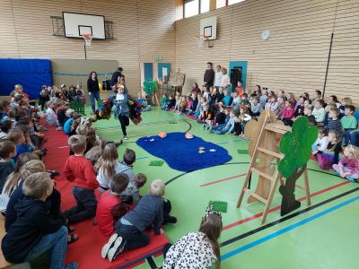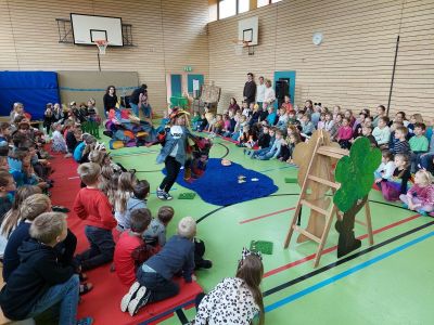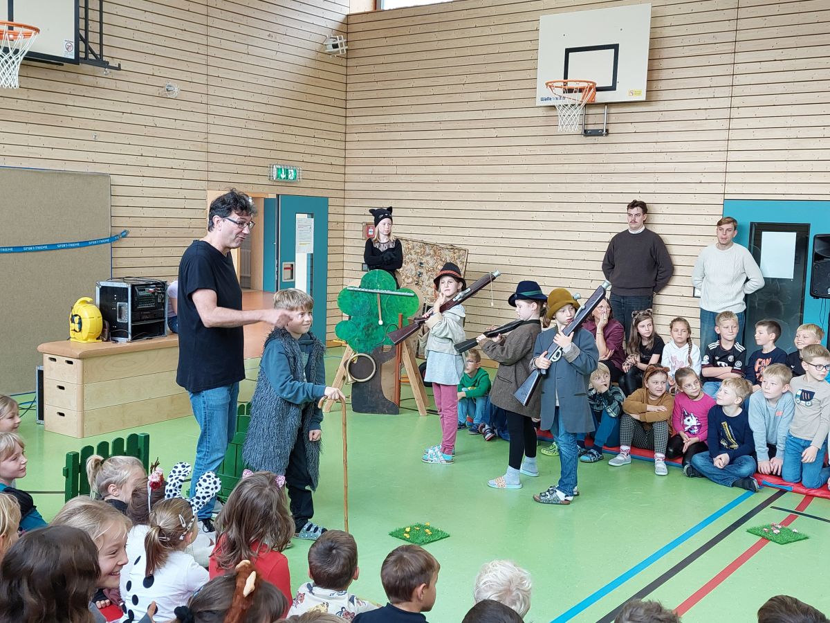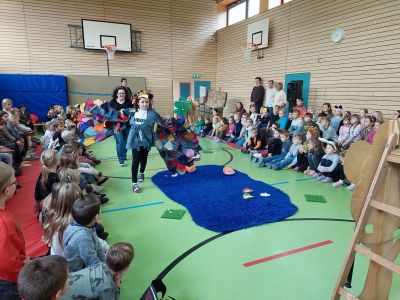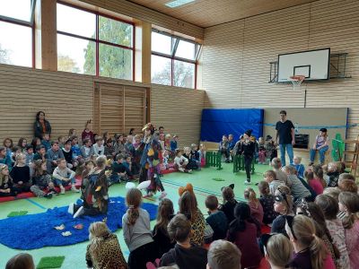 Das Team der Kinderoper Papageno aus Wien war am Mittwoch zu Gast in Künzing, um den Kindern beider Schulhäuser das musikalische Märchen "Peter und der Wolf" vorzustellen. Bereits im Vorfeld lernten die Schüler im Musikunterricht den Komponisten und die Geschichte kennen. Außerdem studierten 10 Mädchen und Jungen kleine Sprechrollen ein. Diese wurden dann, angeleitet von den beiden Schauspielern, die das Stück erzählten, aktiv. Sowohl die zuschauenden Kinder als auch die Lehrer wurden in das Geschehen eingebunden, sodass die Aufführung äußerst kurzweilig war.