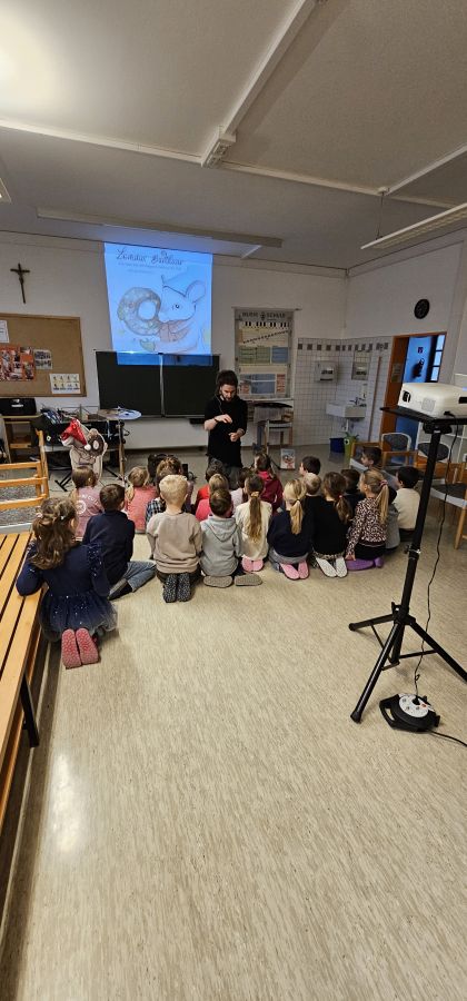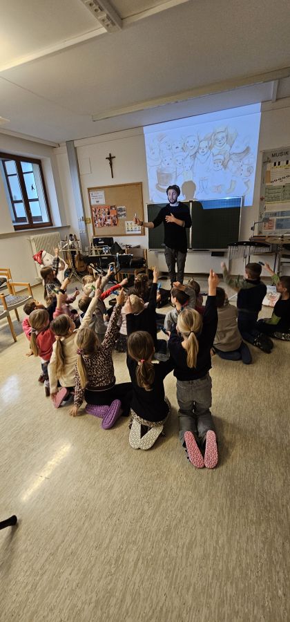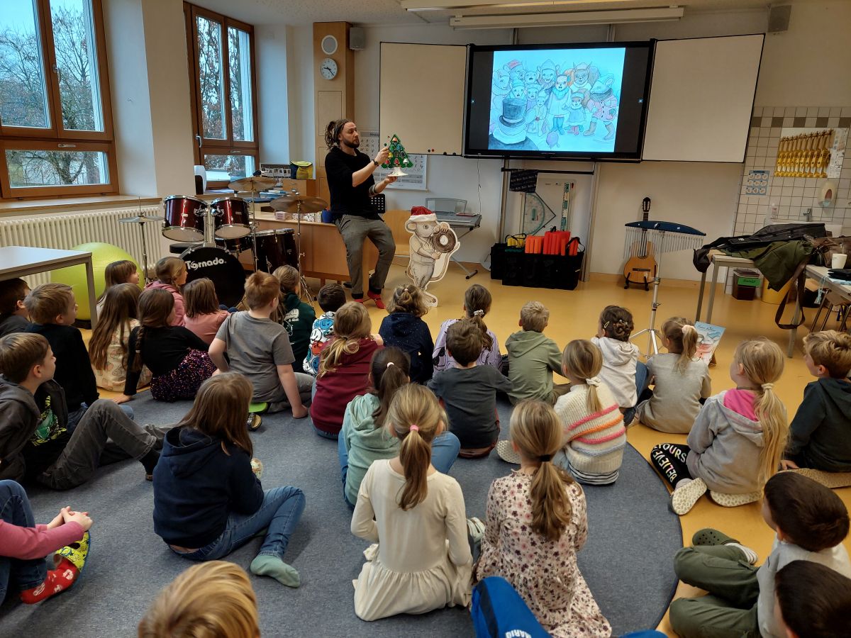 Am Dienstag und Mittwoch hatten die Schülerinnen und Schüler unserer Grundschule ein ganz besonderes vorweihnachtliches Erlebnis: Der Autor Andy Kuhn besuchte uns und nahm uns mit auf eine spannende Reise in die Welt von "Lomäus Barthaar – Mausige Weihnachten".